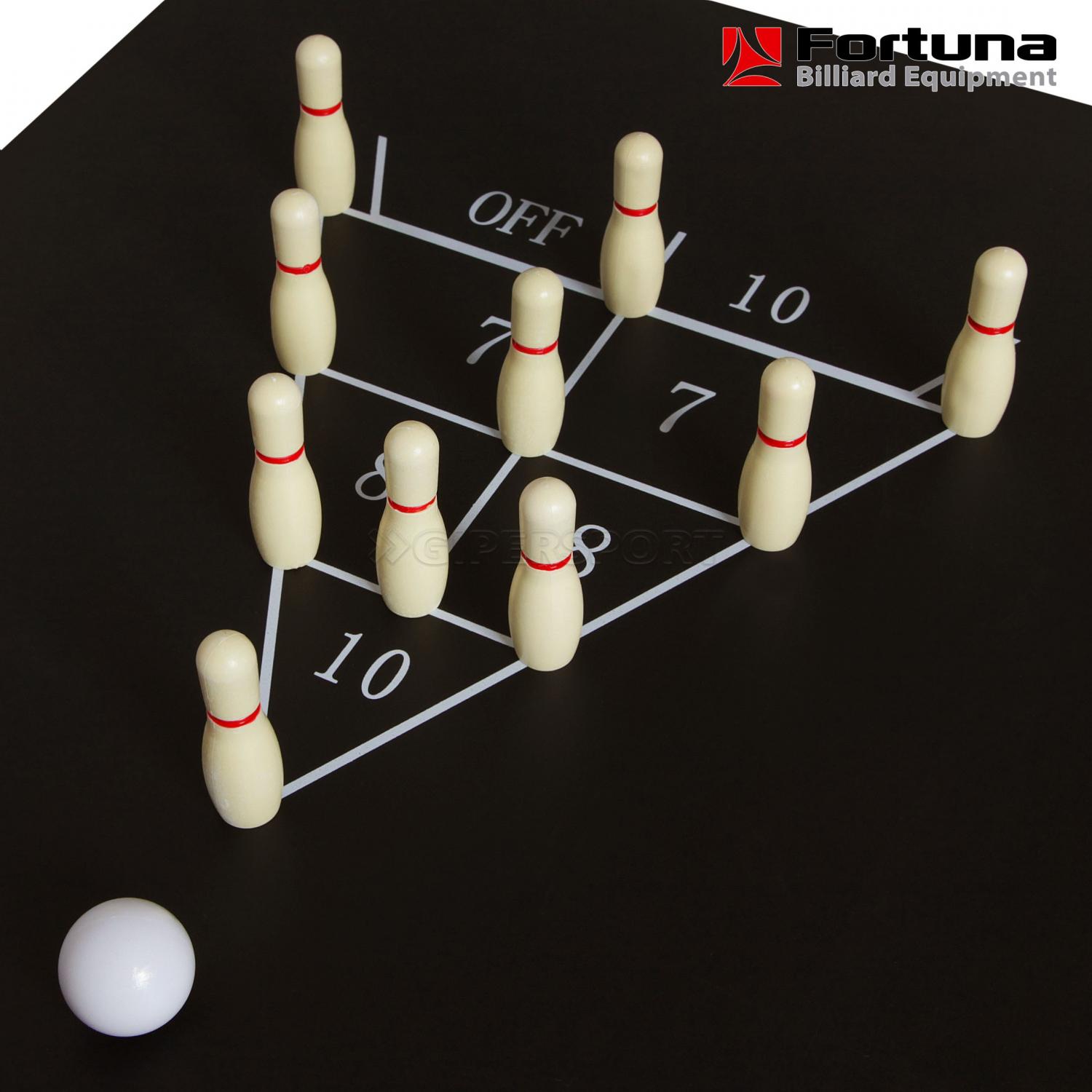 Бильярдный стол Fortuna Русская пирамида 4 фута 9 в 1 - это многофункциональный игровой стол, включающий 9 игр: русский бильярд, шашки, шахматы, нарды, настольный теннис (пинг-понг), кегли, шаффлборд, игральные карты и домино.