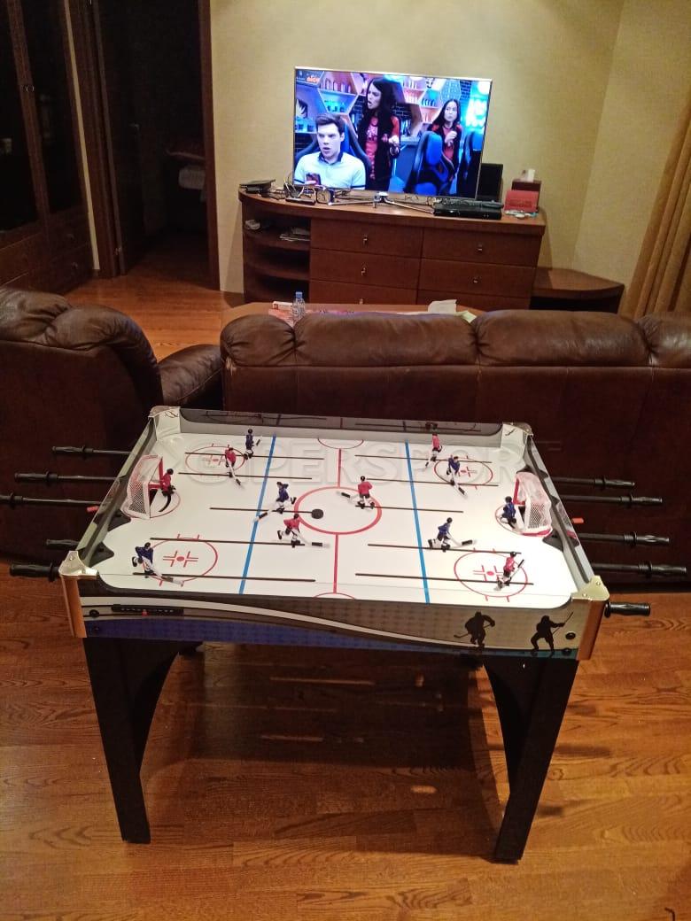 Обратная сторона теннисного игрового поля имеет ламинированную поверхность и может быть использована как столешница письменного или обеденного стола, а также как основание для дополнительных игр комплекта.