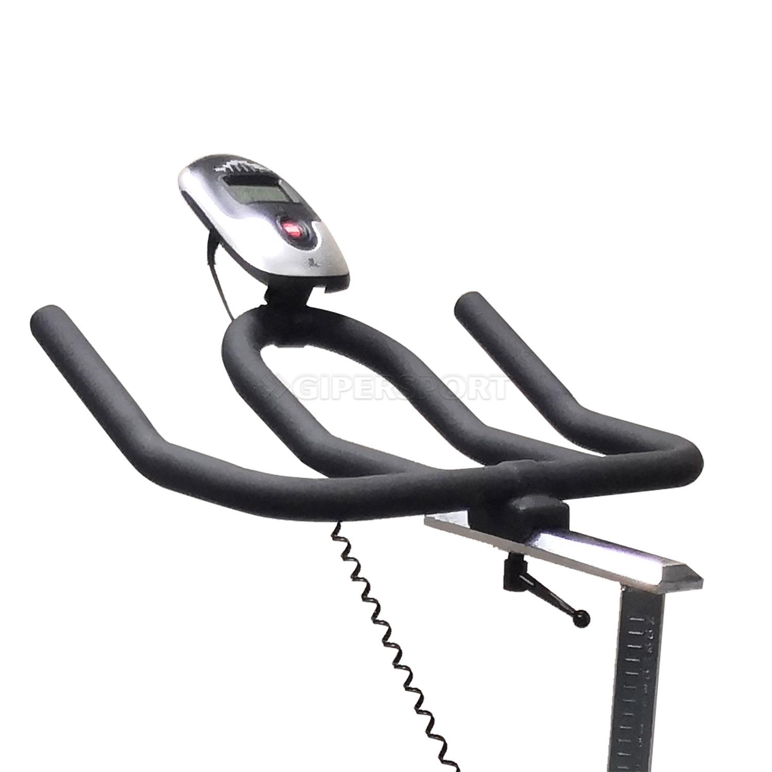 Вертикальный механический спин-байк с ременным типом привода и колодочной системой нагружения. Изменение нагрузки с помощью удобной рукоятки на корпусе тренажера. Предусмотрен экстренный тормоз.